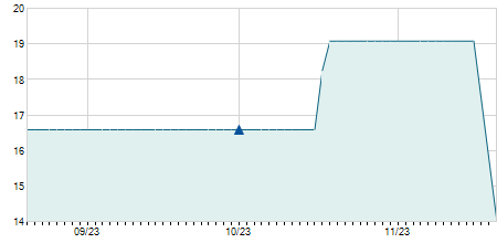 | 17/07/2018 | 0,00 / 0,00% | 19,00 | 19,00 | 19,00 | 19,00 | 19,00 | 6,65 | 236 |   |