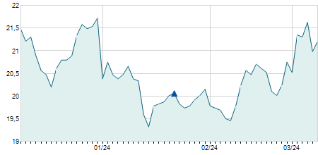| 21/11/2023 | 0,00 / 0,00% | 17,30 | 17,30 | 16,70 | 16,70 | 16,73 | 13,87 | 3.100 |   |