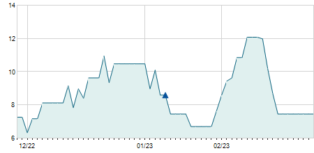 -0,75 / -6,85%