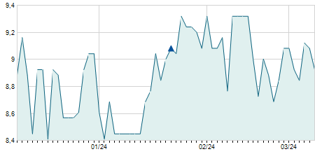 -0,30 / -3,30%