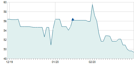 | 05/09/2025 | -0,10 / -0,75% | 13,45 | 13,55 | 13,30 | 13,30 | 13,38 | 13,30 | 248.500 |   |