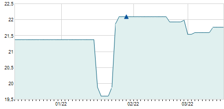 | 07/07/2021 | -0,20 / -1,82% | 10,90 | 10,90 | 10,25 | 10,80 | 10,42 | 8,91 | 672.400 |   |