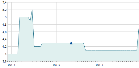 | 26/11/2020 | 0,00 / 0,00% | 9,00 | 9,00 | 8,60 | 9,00 | 8,84 | 6,92 | 105.610 |   |