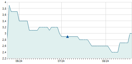 | 09/04/2024 | -0,10 / -0,37% | 27,10 | 27,10 | 27,10 | 27,10 | 27,10 | 24,93 | 1.800 |   |