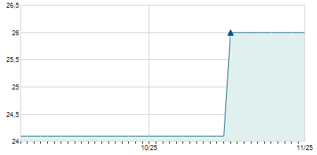 | 25/01/2019 | +5,40 / +14,71% | 42,10 | 42,10 | 42,10 | 42,10 | 42,10 | 4,03 | 100 |   |