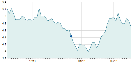 | 03/06/2020 | +3,60 / +4,84% | 76,00 | 79,00 | 74,50 | 78,00 | 76,15 | 7,77 | 2.000 |   |