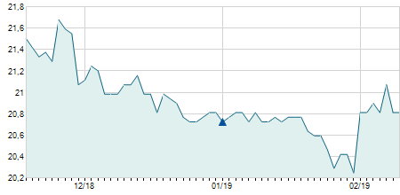 | 21/06/2019 | 0,00 / 0,00% | 65,00 | 65,00 | 65,00 | 65,00 | 65,00 | 6,22 | 0 |   |