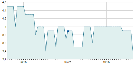 | 07/01/2019 | +0,10 / +0,26% | 33,30 | 38,20 | 33,30 | 38,20 | 35,75 | 3,65 | 200 |   |