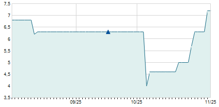 | 06/02/2025 | 0,00 / 0,00% | 25,20 | 26,00 | 25,20 | 26,00 | 25,70 | 23,94 | 3.600 |   |