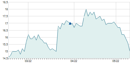 | 01/03/2019 | +1,70 / +14,78% | 11,40 | 13,20 | 11,40 | 13,20 | 12,53 | 13,12 | 300 |   |