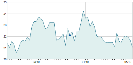 | 27/03/2019 | -2,60 / -14,94% | 20,00 | 20,00 | 14,80 | 14,80 | 17,40 | 14,71 | 200 |   |