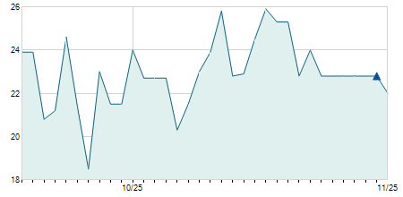 | 21/07/2017 | -1,20 / -9,76% | 13,50 | 13,50 | 11,10 | 11,10 | 12,30 | 5,64 | 200 |   |
