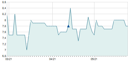 -0,80 / -4,88%