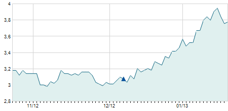 | 10/09/2024 | -0,05 / -0,44% | 11,60 | 11,60 | 11,30 | 11,40 | 11,37 | 11,40 | 332.600 |   |