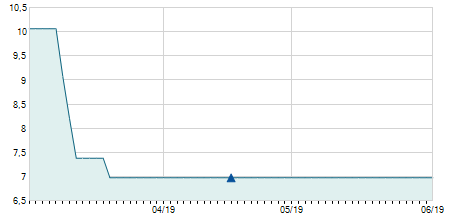 | 05/10/2018 | -0,05 / -1,67% | 3,00 | 3,00 | 2,94 | 2,95 | 2,96 | 2,95 | 108.020 |   |