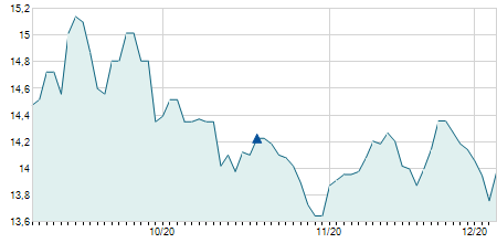 -0,70 / -4,32%