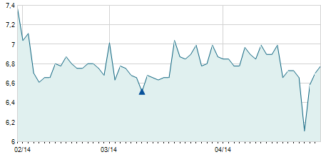 -0,70 / -4,76%