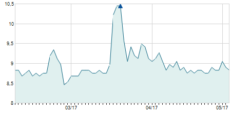 | 05/03/2009 | +0,30 / +3,26% | 9,20 | 9,50 | 9,20 | 9,50 | 9,50 | 2,70 | 62.000 |   |