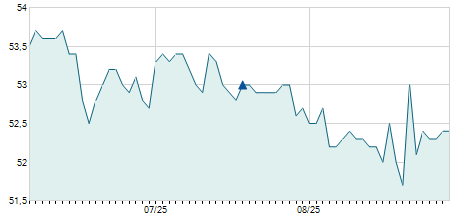 | 09/06/2009 | +1,40 / +5,56% | 26,90 | 26,90 | 25,90 | 26,60 | 26,60 | 7,55 | 675.100 |   |