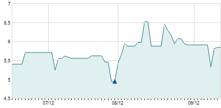 | 11/08/2009 | +2,80 / +6,90% | 43,40 | 43,40 | 40,70 | 43,40 | 43,40 | 12,31 | 1.021.600 |   |