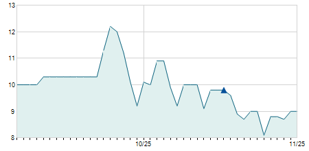 | 03/10/2017 | -0,07 / -1,69% | 4,10 | 4,10 | 4,01 | 4,08 | 4,05 | 4,08 | 108.950 |   |