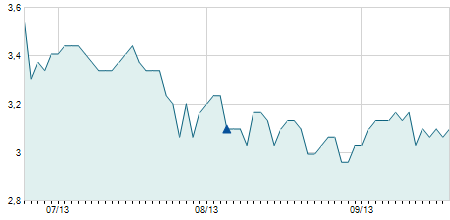 | 22/06/2010 | -1,20 / -3,69% | 32,00 | 32,50 | 30,10 | 31,30 | 31,00 | 31,30 | 39.000 |   |