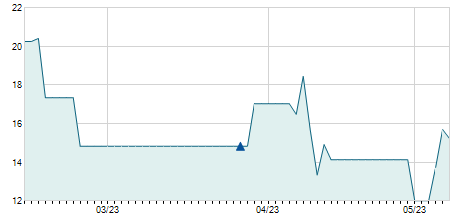 | 05/05/2022 | -2,40 / -9,92% | 21,80 | 26,60 | 21,80 | 21,80 | 22,62 | 7,27 | 600 |   |