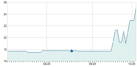 | 09/05/2022 | +0,90 / +3,77% | 21,60 | 24,90 | 21,60 | 24,80 | 24,01 | 8,27 | 800 |   |