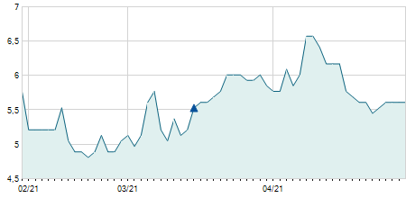 | 04/03/2014 | -0,60 / -9,23% | 5,90 | 5,90 | 5,90 | 5,90 | 5,90 | 4,54 | 100 |   |