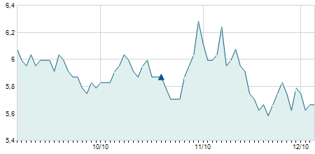 | 03/11/2017 | +0,30 / +2,21% | 13,60 | 13,90 | 13,50 | 13,90 | 13,63 | 9,43 | 115.900 |   |
