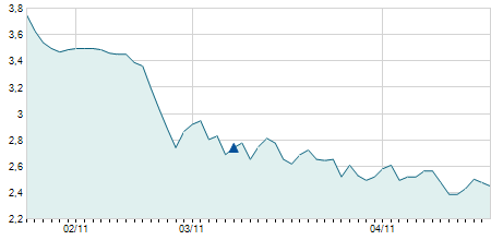 -0,40 / -2,99%