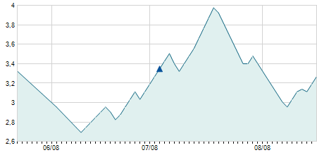 | 26/08/2014 | +0,50 / +0,80% | 63,20 | 63,20 | 62,90 | 63,00 | 63,00 | 6,07 | 4.600 |   |