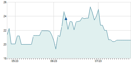 | 20/08/2021 | -1,00 / -12,50% | 7,50 | 8,40 | 6,90 | 7,00 | 7,80 | 7,00 | 1.628.800 |   |