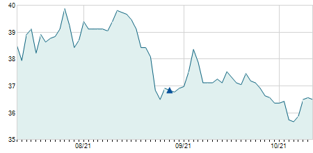 | 26/01/2018 | +0,10 / +0,28% | 36,00 | 36,10 | 36,00 | 36,10 | 36,07 | 12,99 | 300 |   |