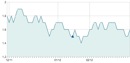 | 03/03/2025 | +0,10 / +0,33% | 32,20 | 32,20 | 30,60 | 30,60 | 30,90 | 29,17 | 600 |   |