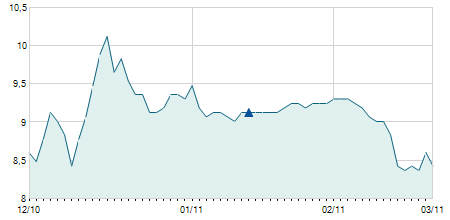 | 15/01/2024 | -3,00 / -9,09% | 33,00 | 33,00 | 30,00 | 30,00 | 32,25 | 30,00 | 400 |   |