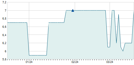 -0,70 / -4,19%