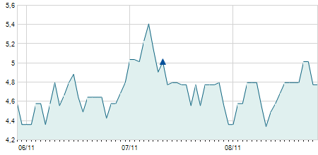 -0,80 / -5,23%