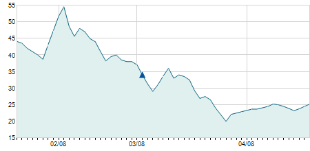 | 08/01/2010 | -1,30 / -4,61% | 27,50 | 29,00 | 26,70 | 26,90 | 27,96 | 21,45 | 58.400 |   |