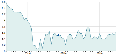 | 02/04/2015 | -0,50 / -5,56% | 8,50 | 8,50 | 8,50 | 8,50 | 8,50 | 7,49 | 125 |   |