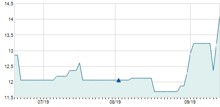 | 02/04/2015 | -0,50 / -5,56% | 8,50 | 8,50 | 8,50 | 8,50 | 8,50 | 7,49 | 125 |   |