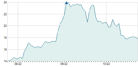 | 17/01/2022 | -1,80 / -4,31% | 40,90 | 42,10 | 39,80 | 40,00 | 40,70 | 17,70 | 83.300 |   |