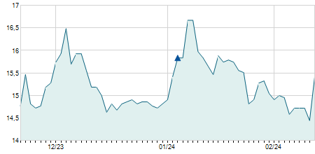 | 02/06/2022 | +0,20 / +0,47% | 42,50 | 43,30 | 42,40 | 42,60 | 43,00 | 18,85 | 61.600 |   |