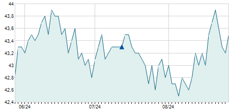 | 03/03/2022 | -0,10 / -0,29% | 33,80 | 33,80 | 33,80 | 33,80 | 33,80 | 19,39 | 300 |   |