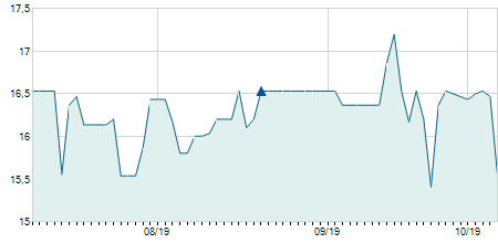 | 19/03/2018 | +1,70 / +14,53% | 13,40 | 13,40 | 13,40 | 13,40 | 13,40 | 7,56 | 100 |   |