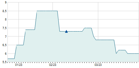 | 08/06/2023 | 0,00 / 0,00% | 15,30 | 15,30 | 15,30 | 15,30 | 15,30 | 12,49 | 0 |   |