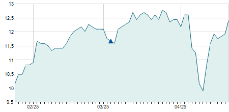 | 11/04/2023 | +0,60 / +4,23% | 12,30 | 14,80 | 12,30 | 14,80 | 14,20 | 12,08 | 400 |   |