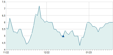 -0,70 / -4,67%