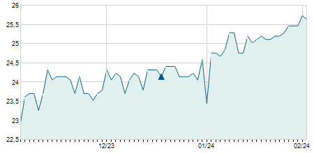 | 25/04/2025 | 0,00 / 0,00% | 30,10 | 30,95 | 30,10 | 30,95 | 30,82 | 30,13 | 7.700 |   |