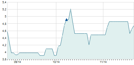 -0,70 / -4,76%